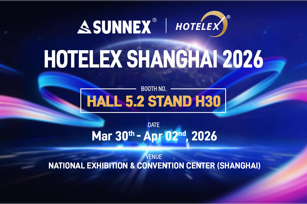 Au nom de toute l'équipe SUNNEX, nous avons le grand plaisir de vous inviter personnellement à visiter notre stand à HOTELEX Shanghai 2026, l'événement phare de l'industrie mondiale de l'hôtellerie et de la restauration.